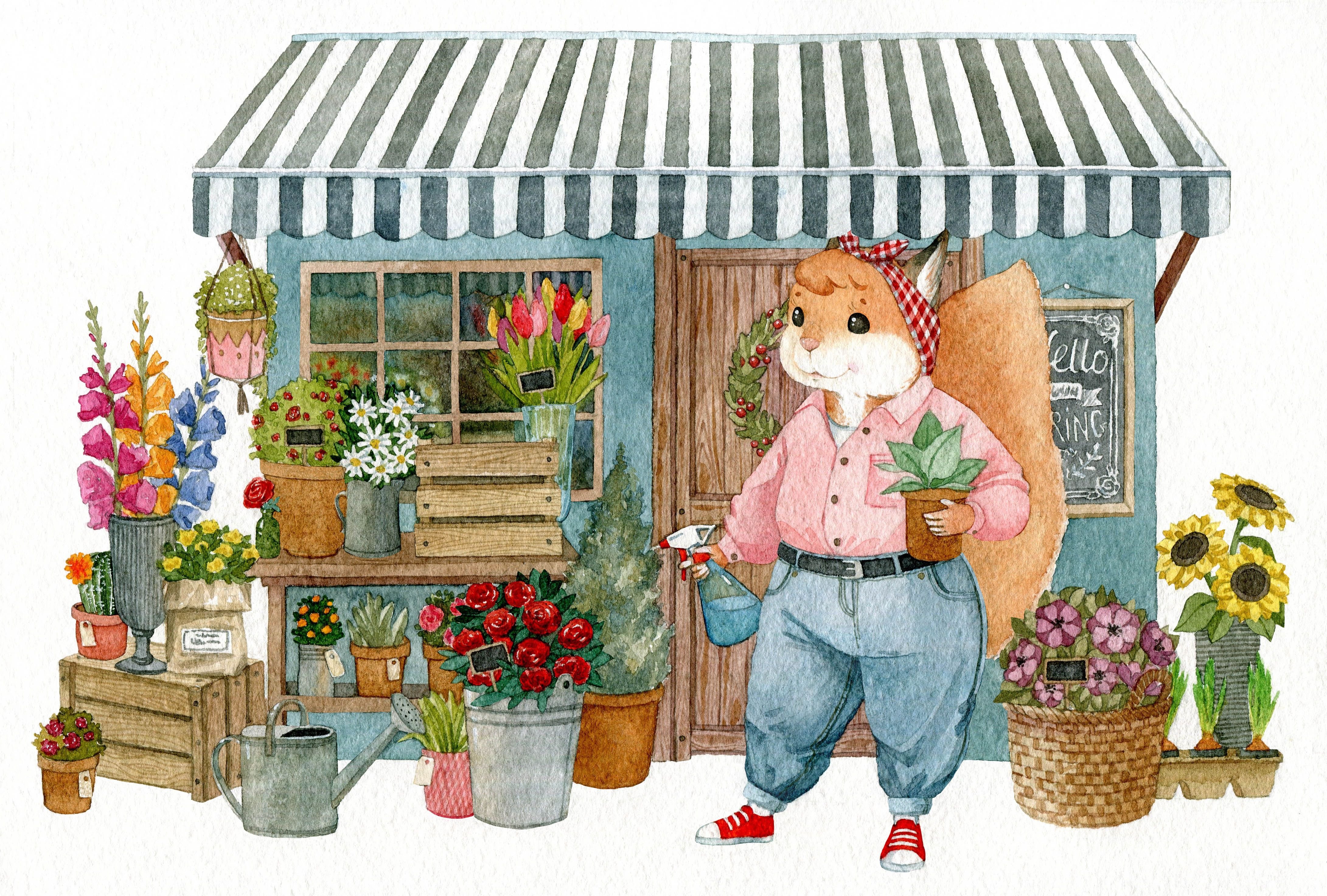 ![Цветочный магазин иллюстрация]()