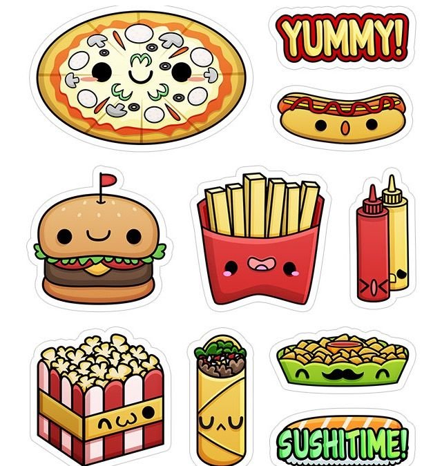 Нарисовать наклейки еда