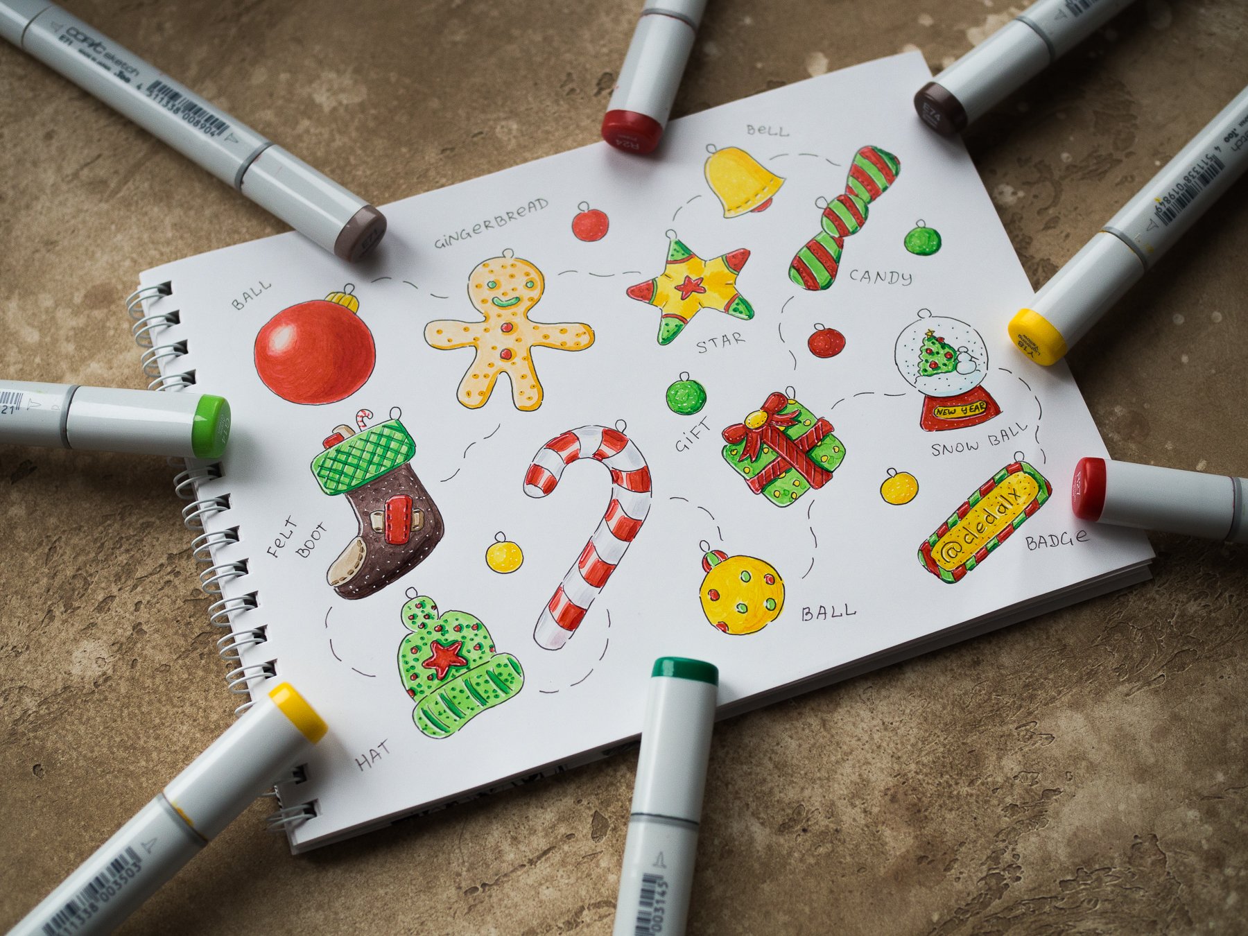 Стикеры фломастерами для скетчбука