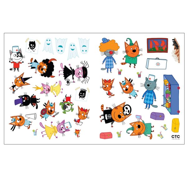 ![Книжка раскраска по номерам три кота набор с наклейками]()