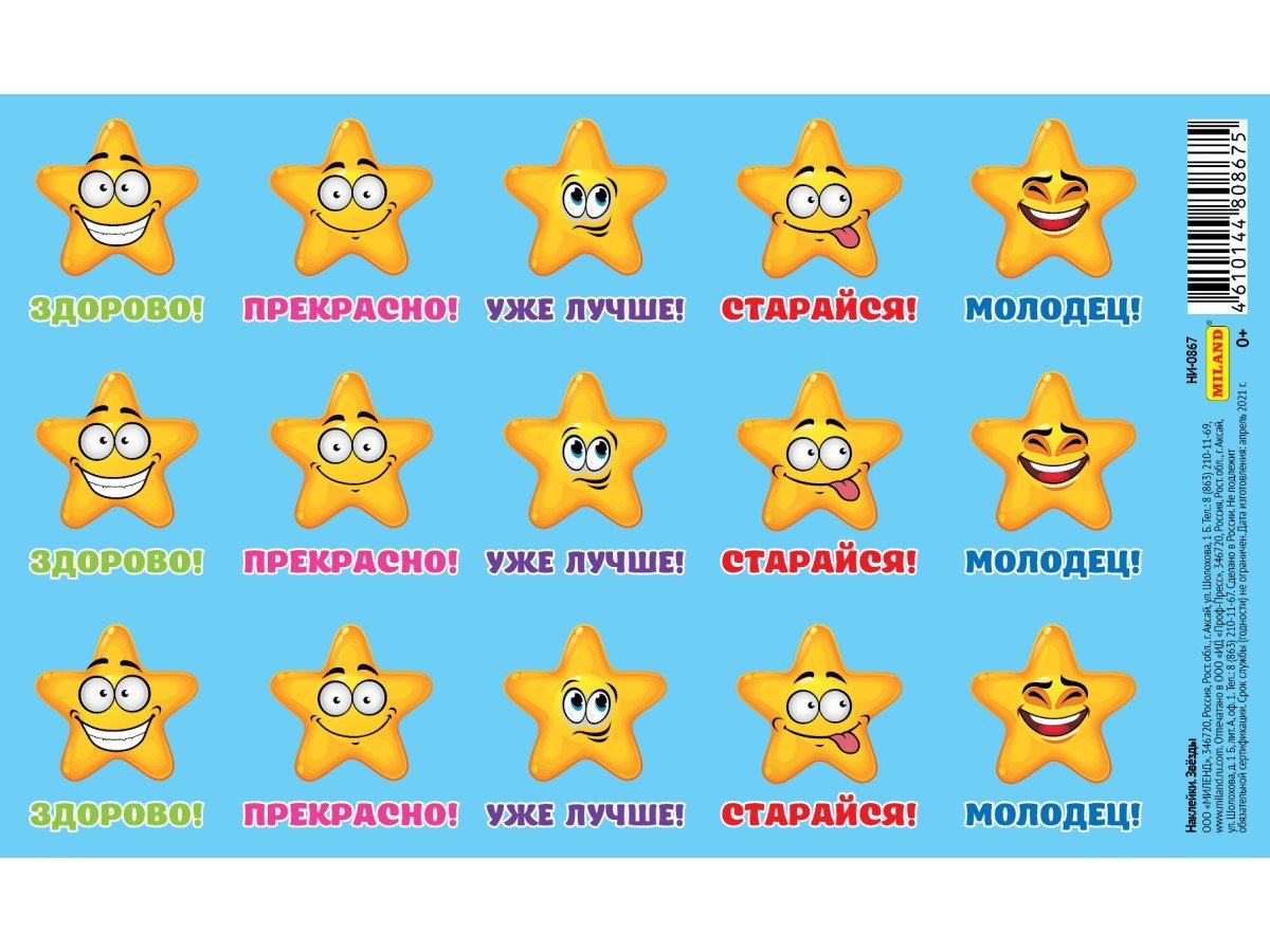 Наклейки молодец старайся отлично