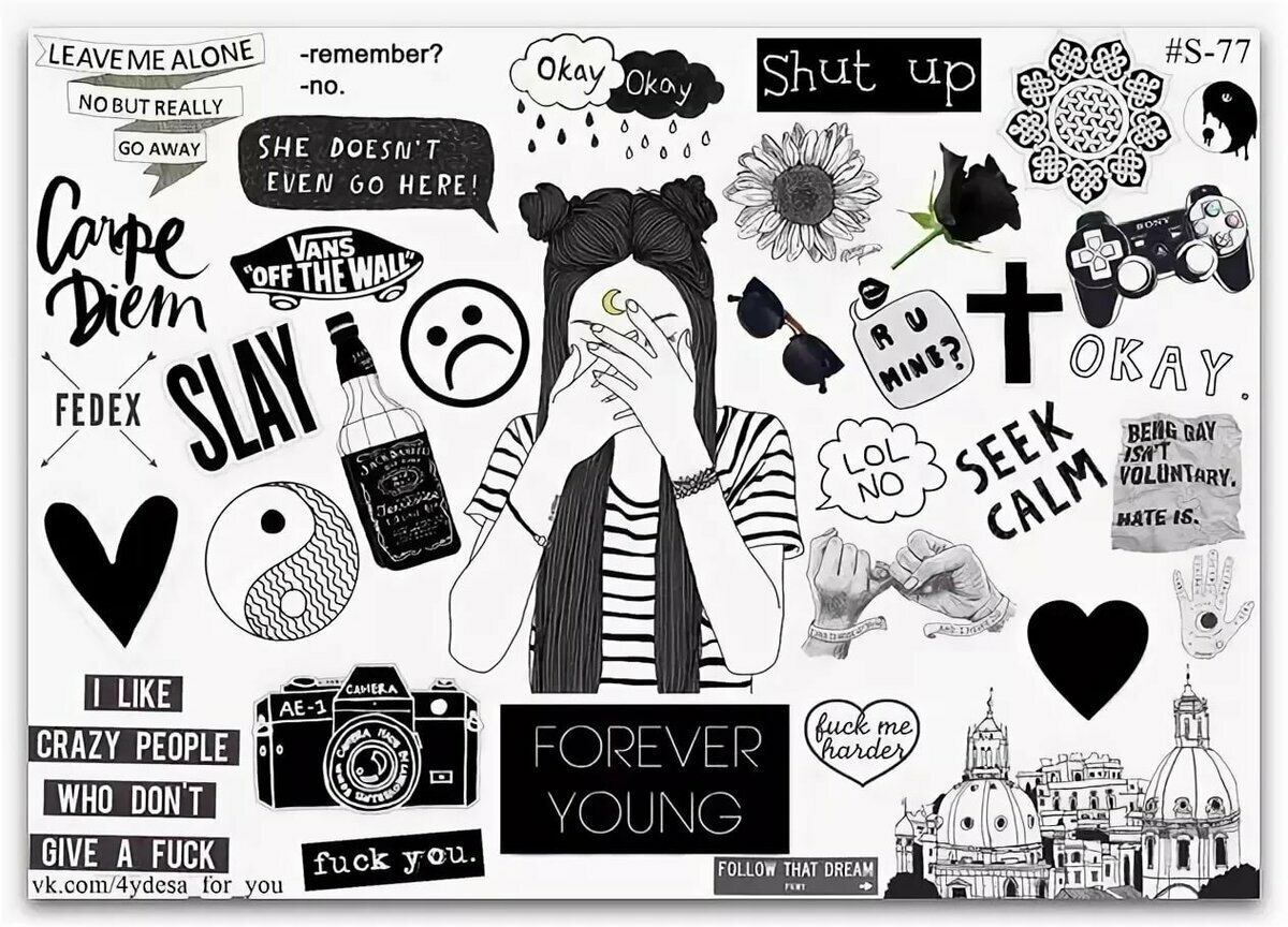 ![Идеи для наклеек черно белые]()