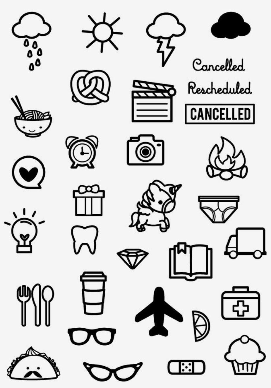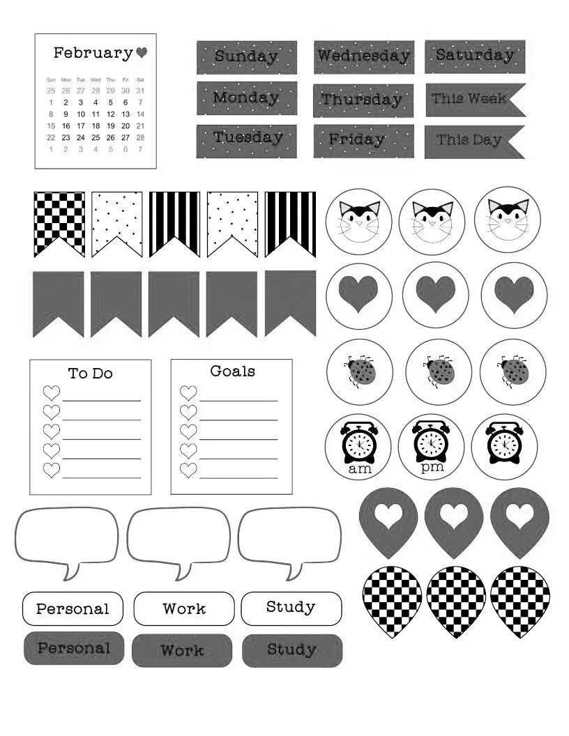 ![Стикеры для ежедневника черно белые]()