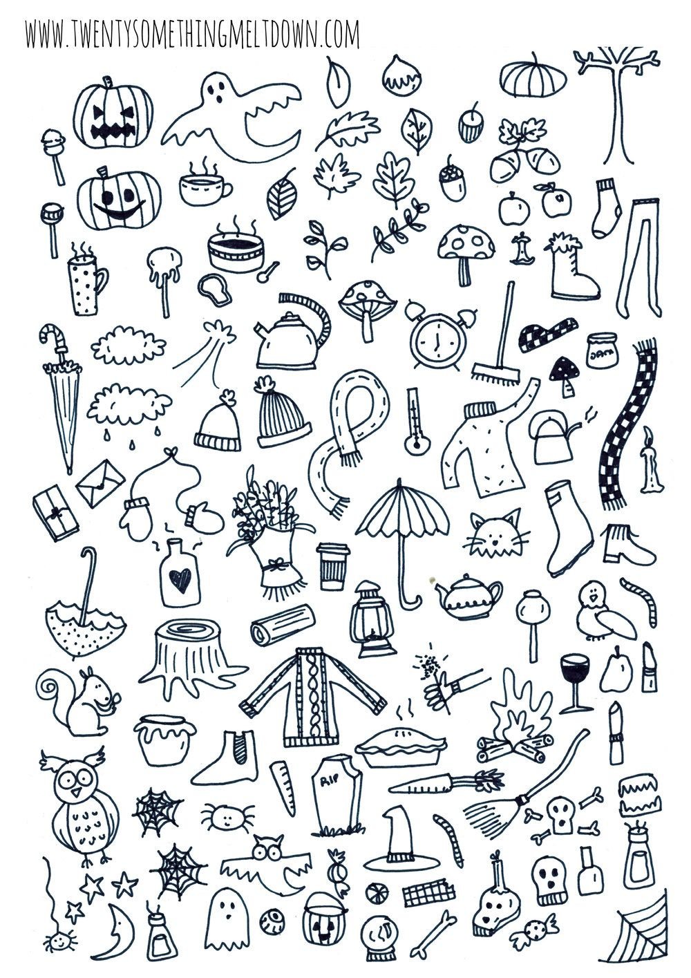 ![Осенние Стикеры для ежедневника черно белые]()