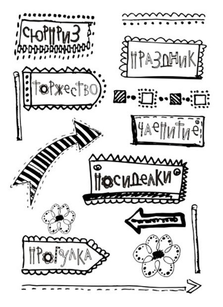 ![Черно белые штампы для скрапбукинга]()