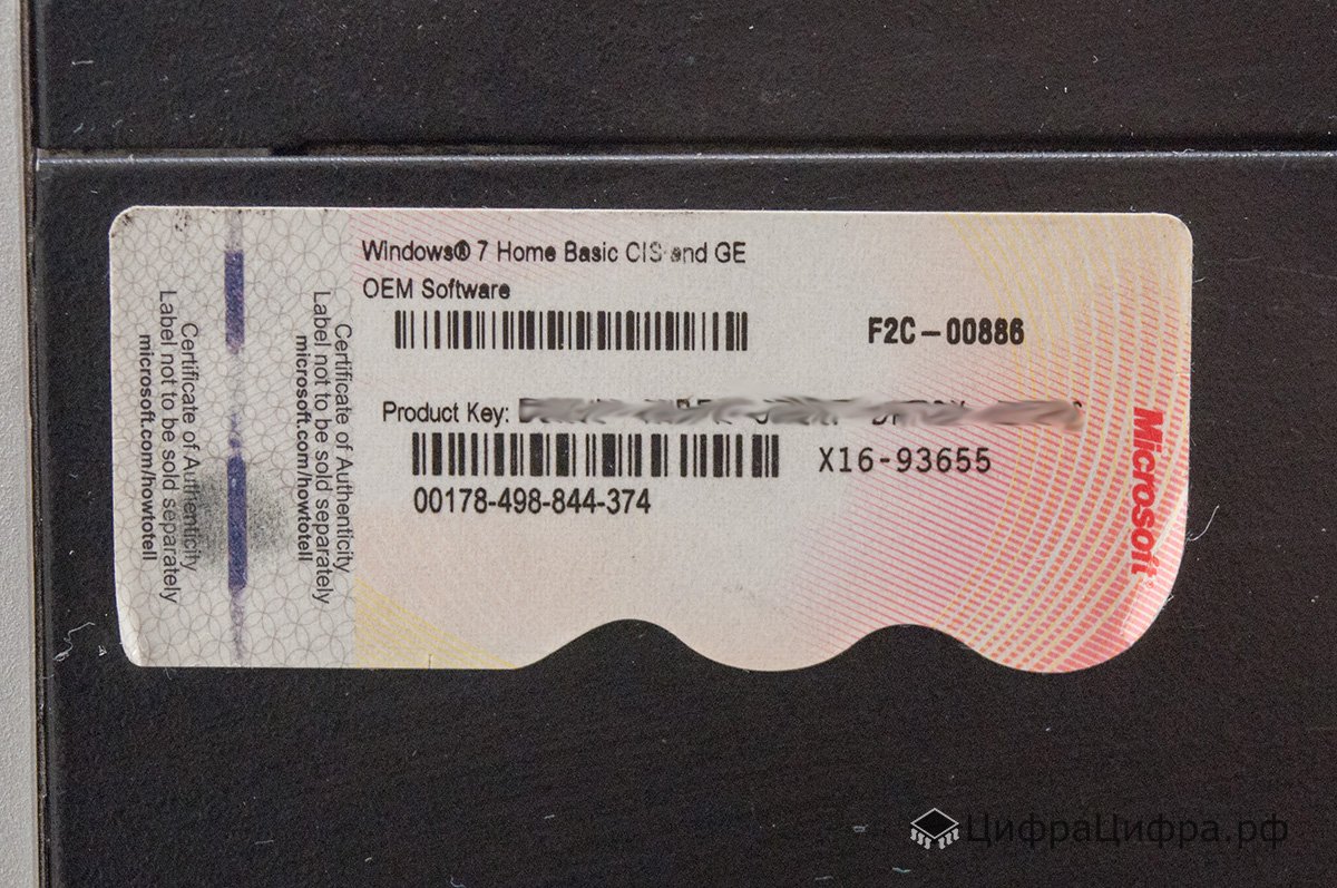 Лицензионная наклейка Windows 7