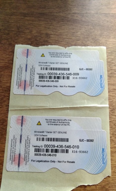 Наклейка активации Windows 7