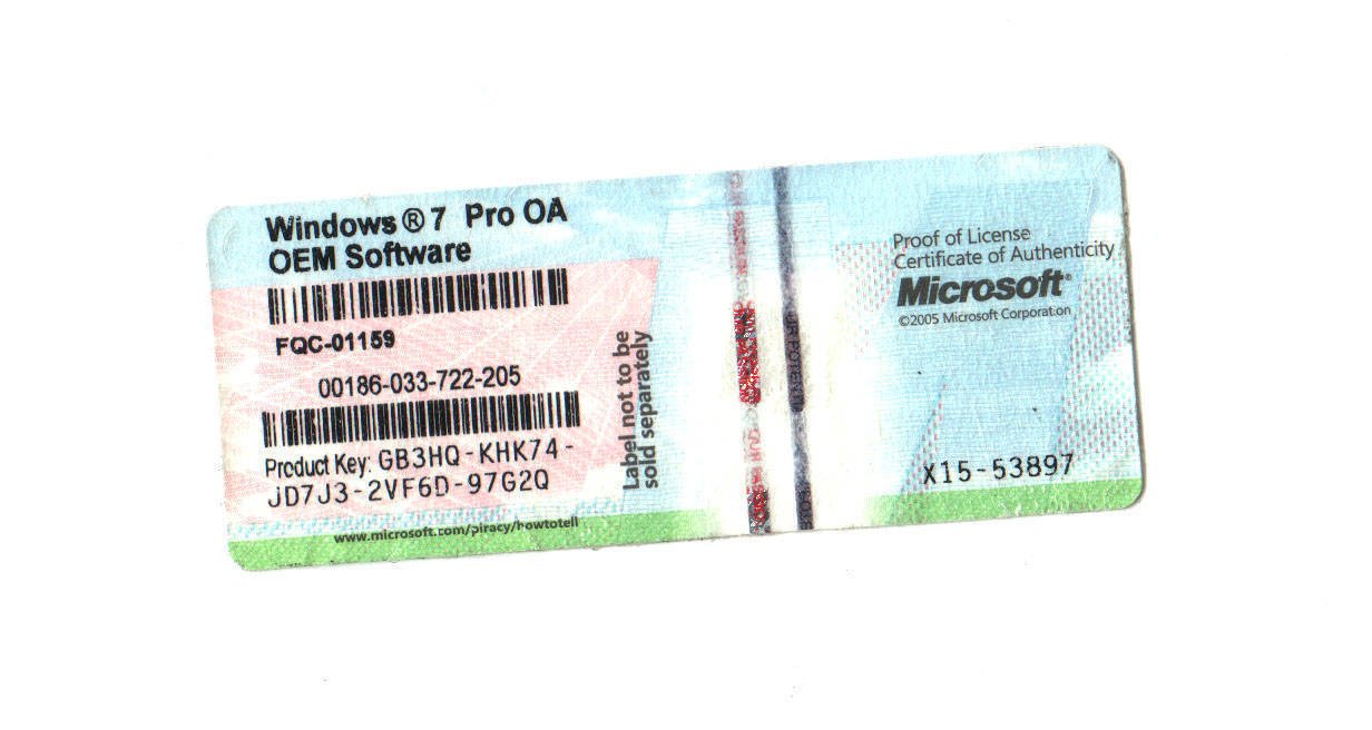 Наклейки Windows 7 Pro ключ продукта