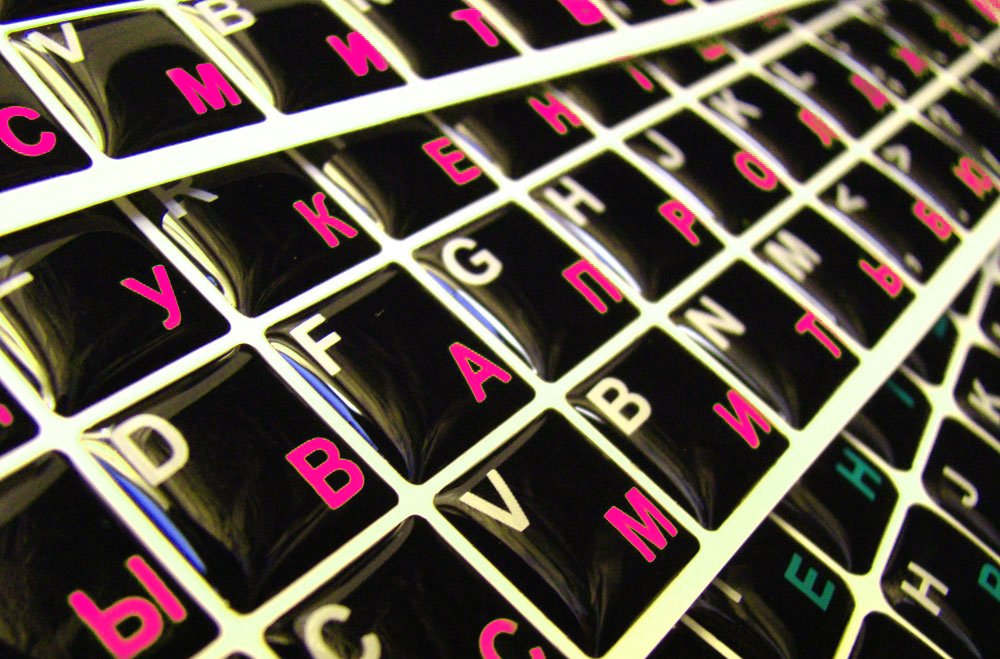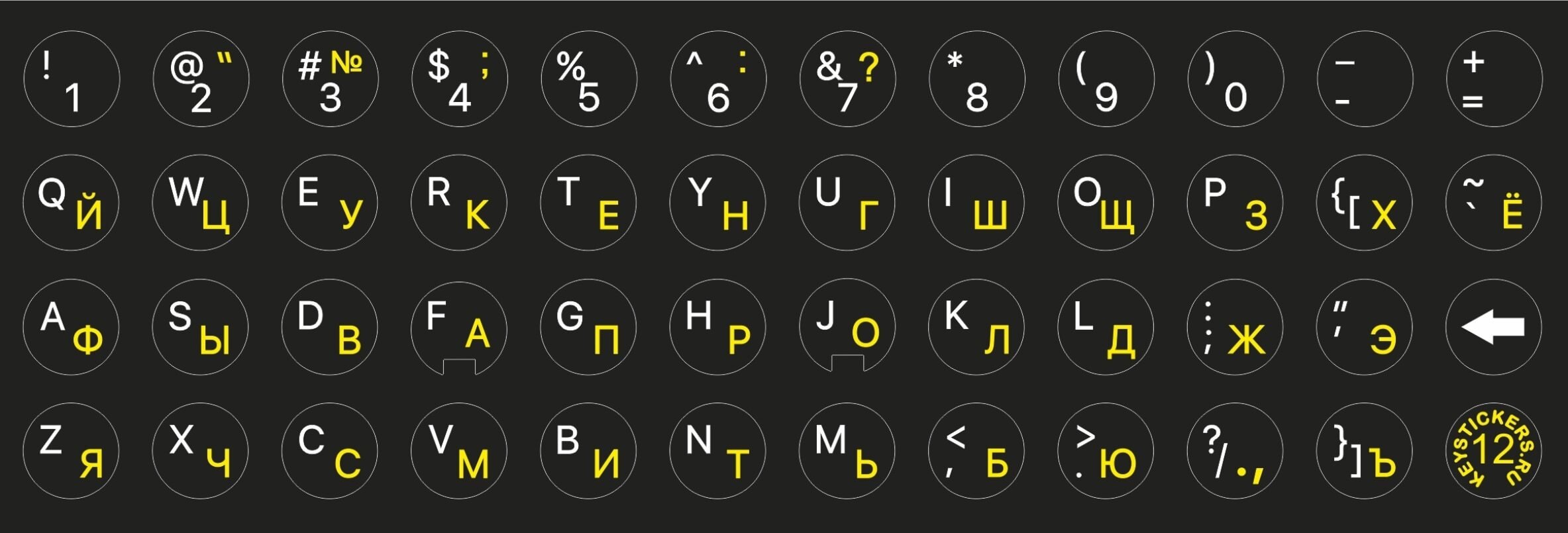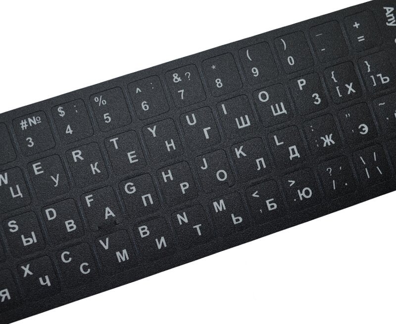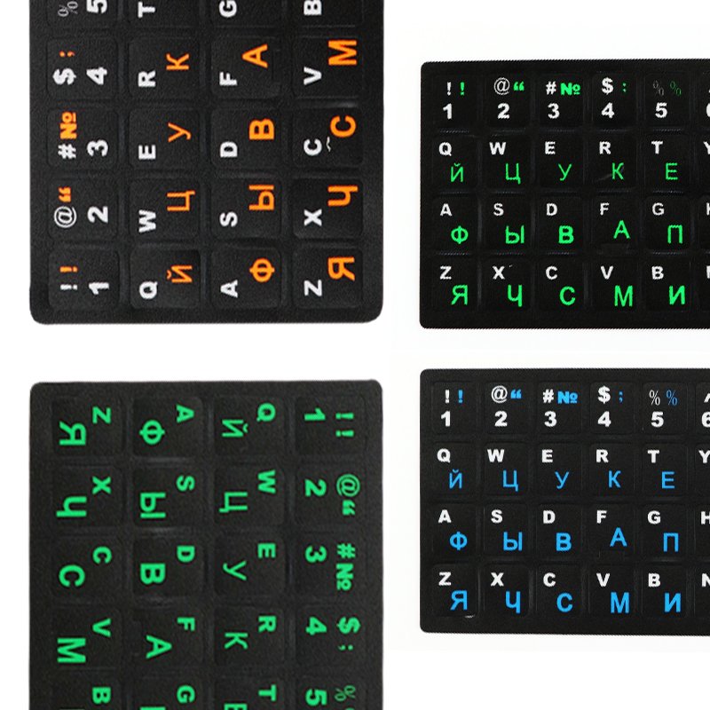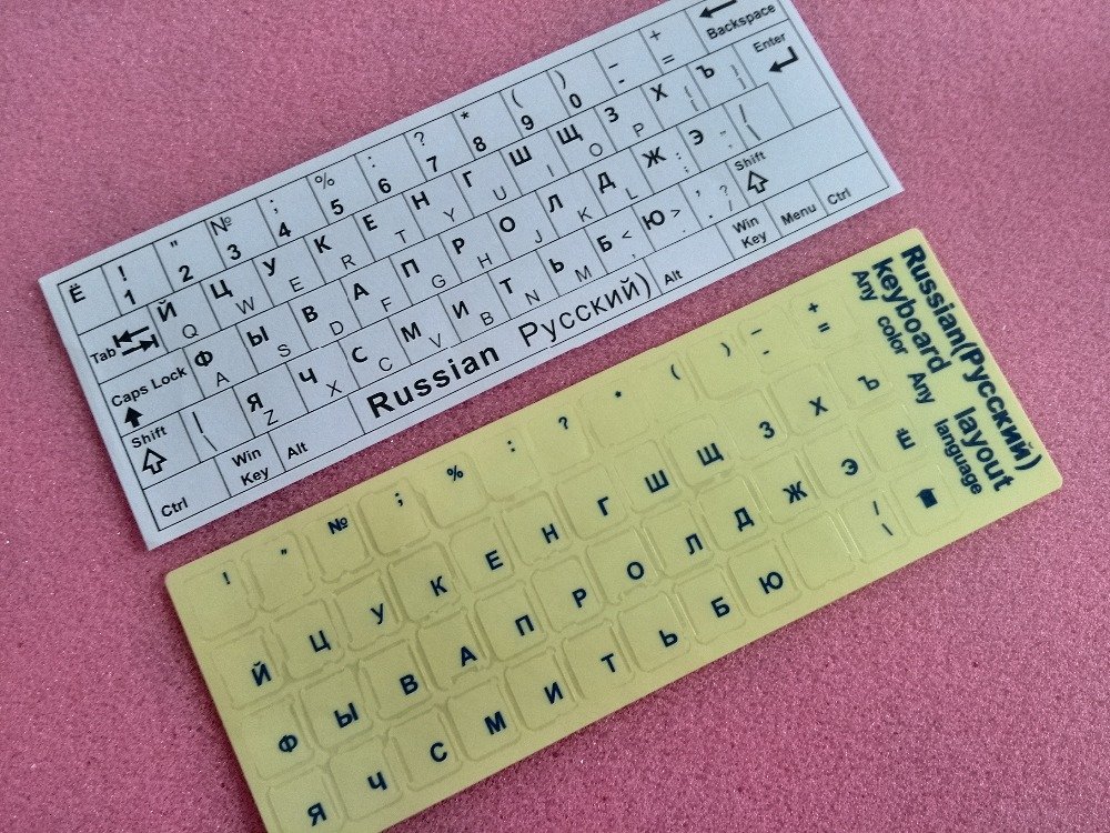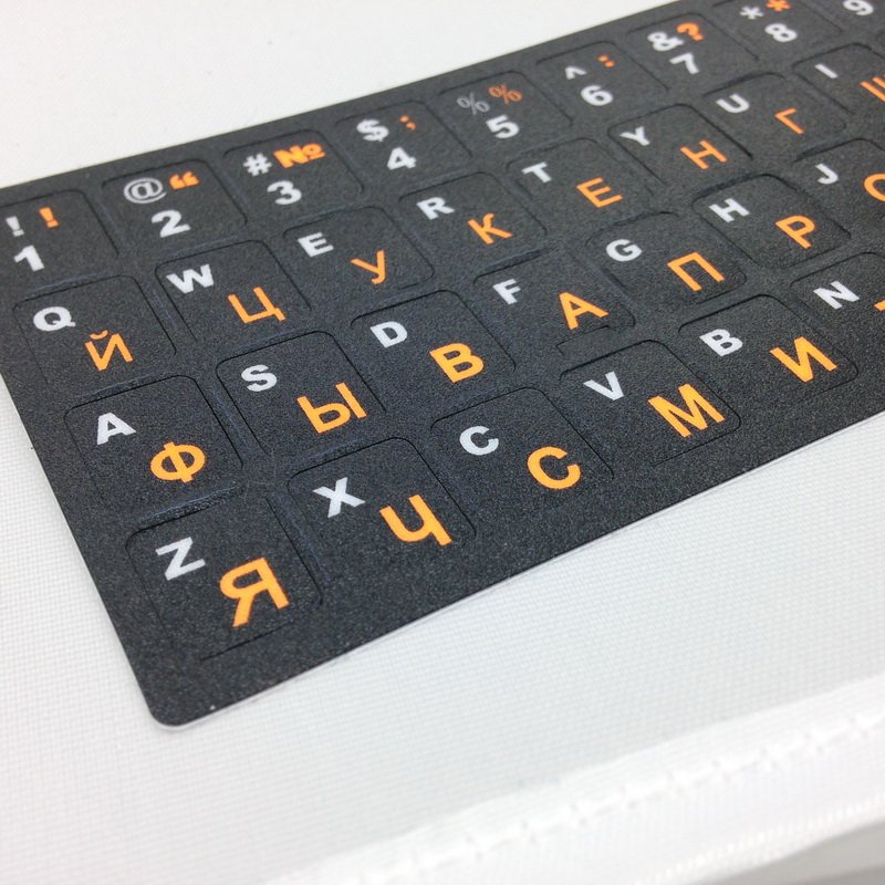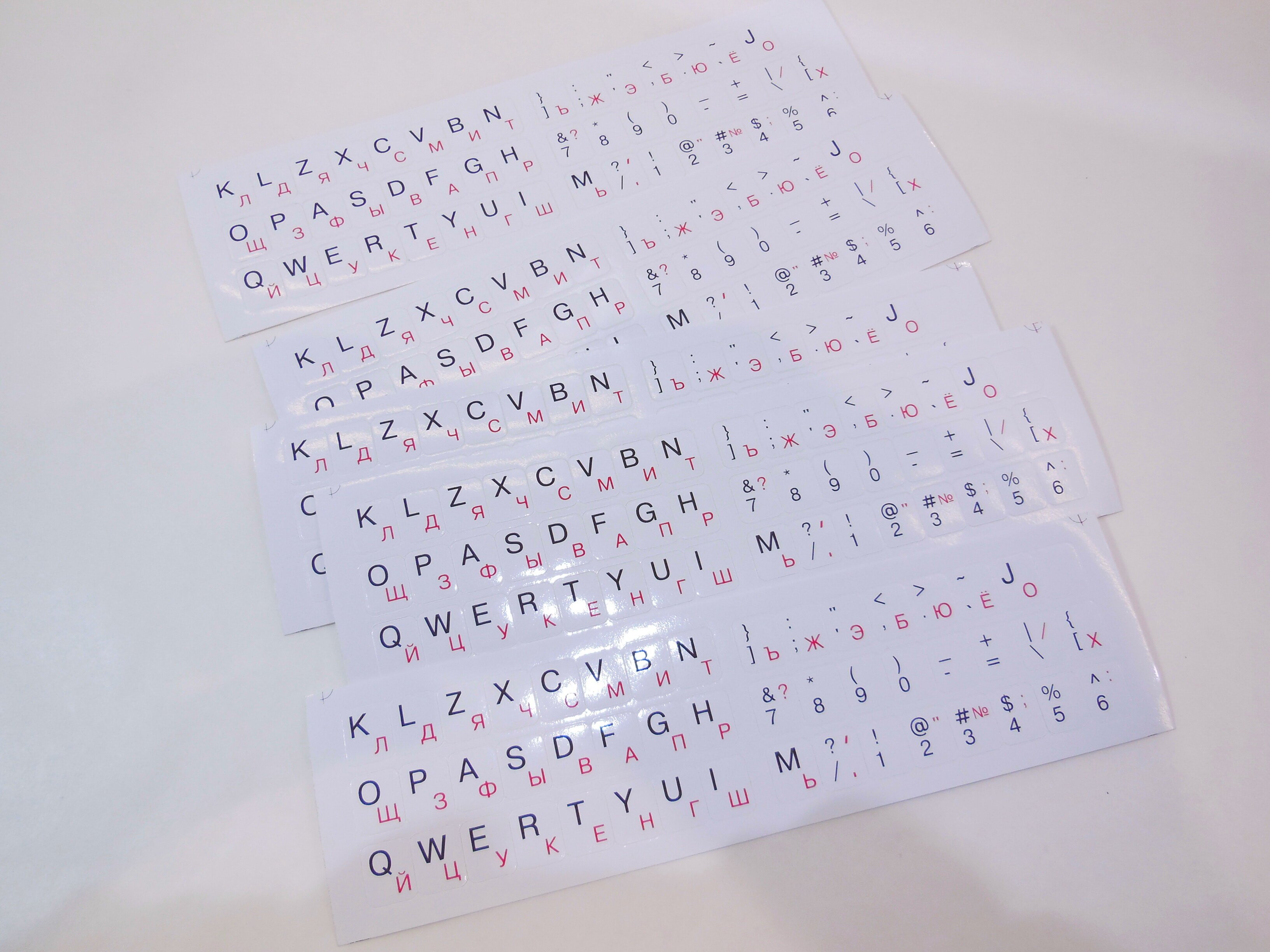 ![Наклейки на клавиатуру с русскими и английскими буквами]()