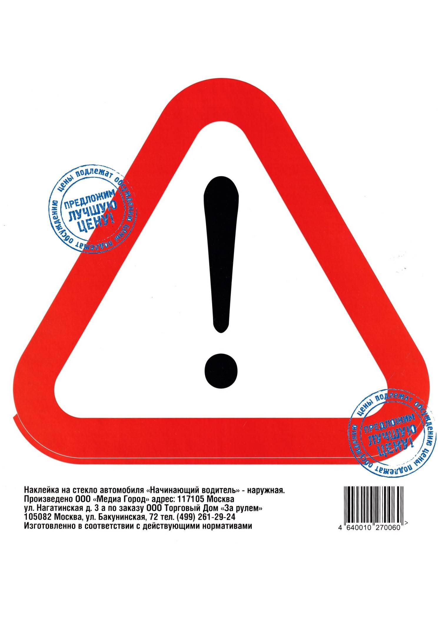 Знак начинающий водитель ГОСТ