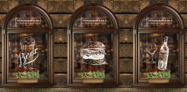 Наклейки на окна ресторана