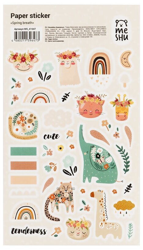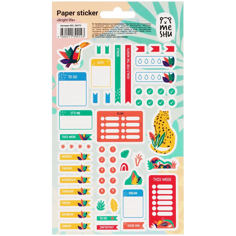 Наклейки бумажные Meshu 'Spring in Jungle', 12*21см, 44 наклейки, европодвес