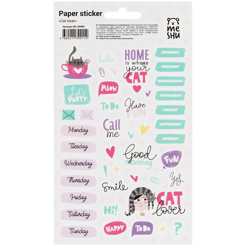 ![Наклейки ПВХ Meshu "Soul warmth", 10*21см, фольга, 28 наклеек, инд. Уп., европодвес]()