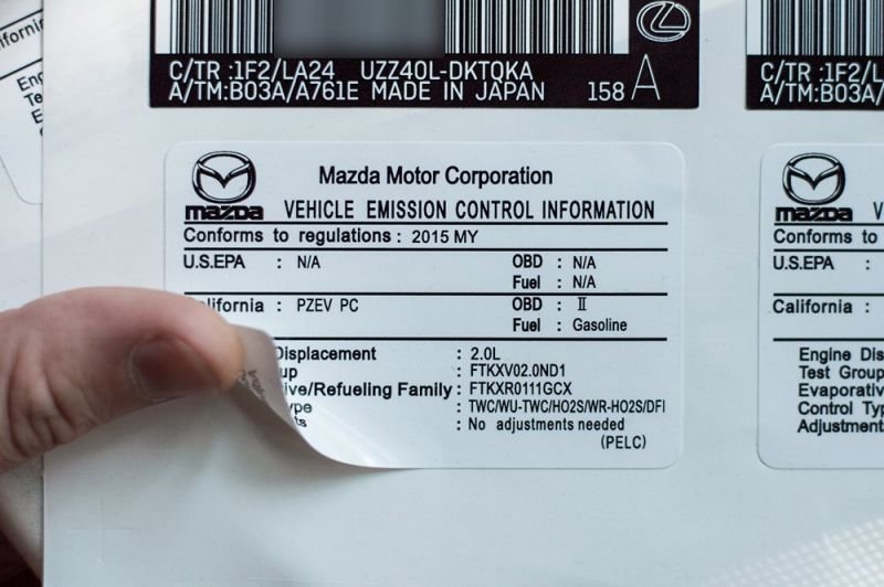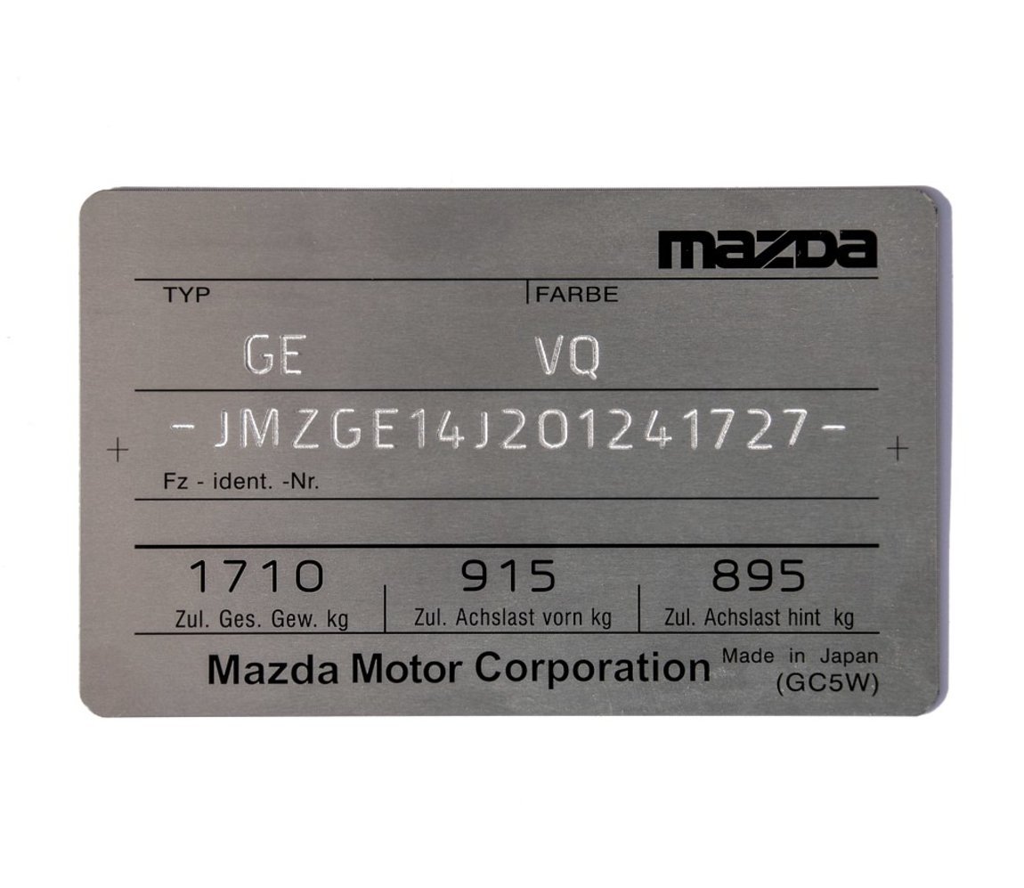 Mazda CX 5 VIN табличка