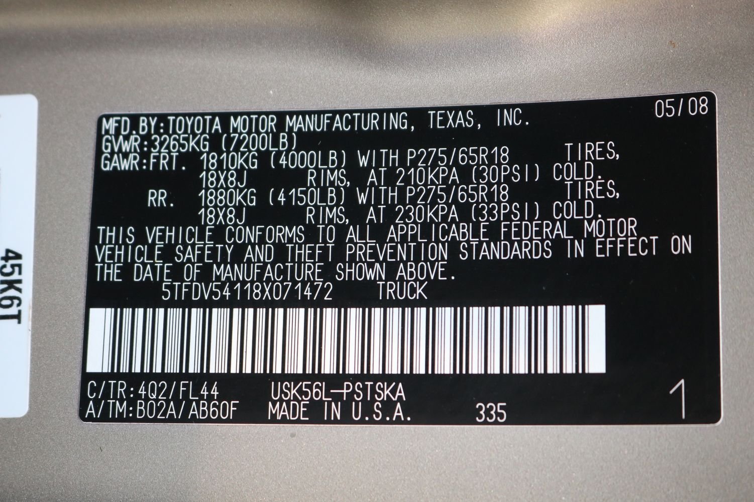 Наклейка с вин кодом на Лексус lx570
