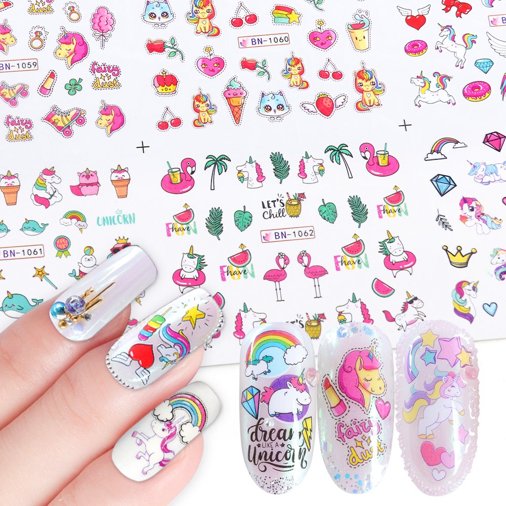Ногти с наклейками единорога
