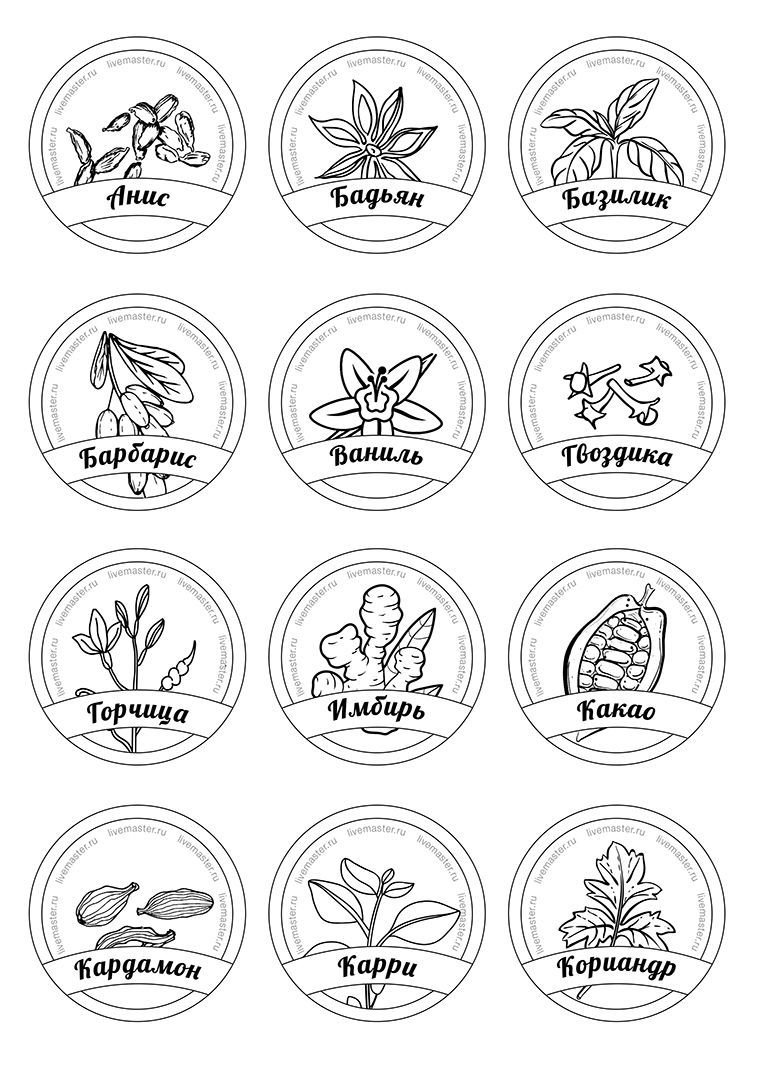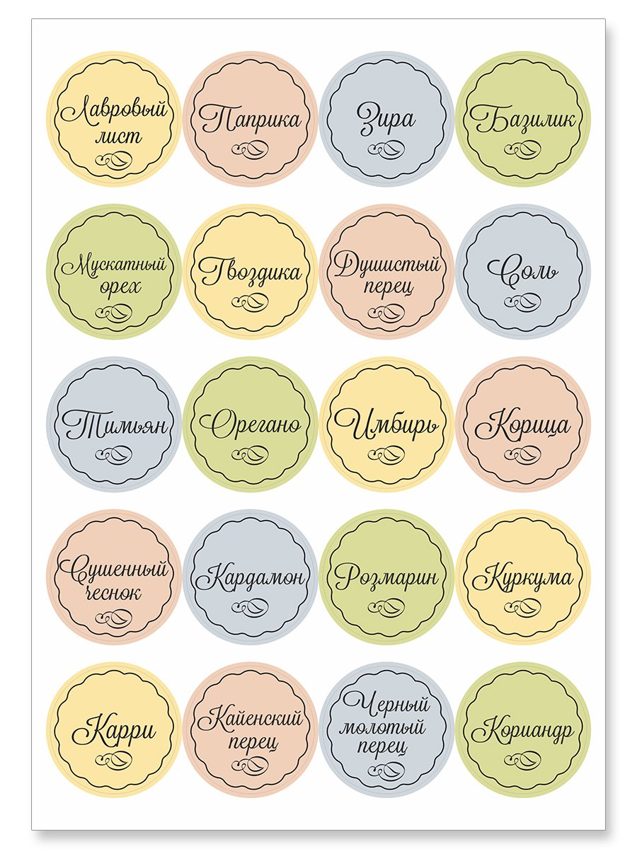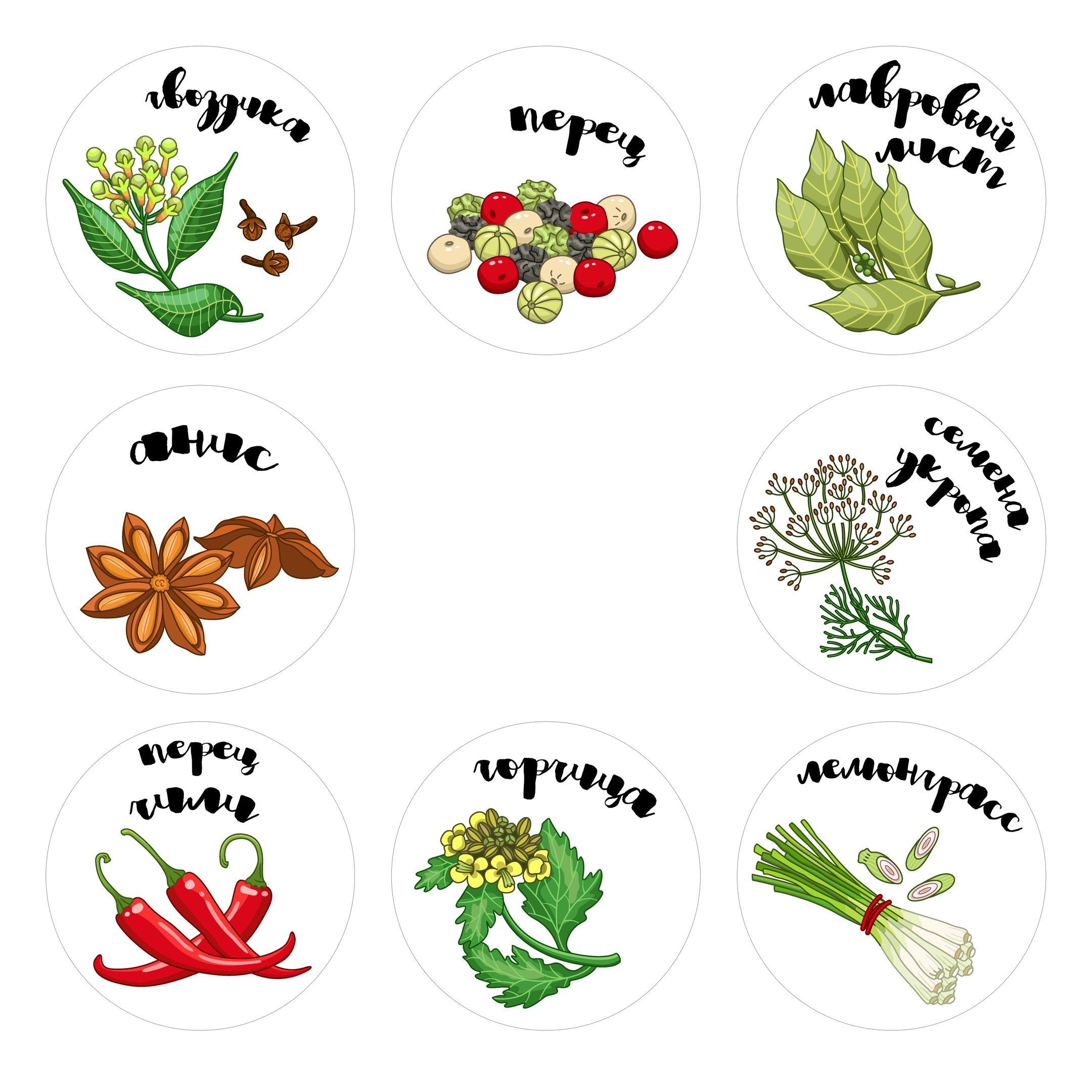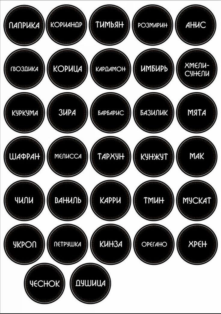 Этикетки для баночек со специями на русском круглые