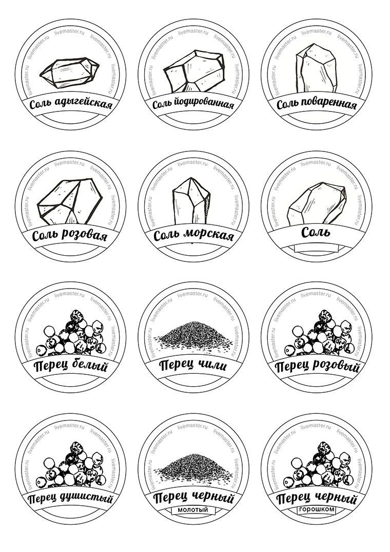 ![Монохромные этикетки для специй]()