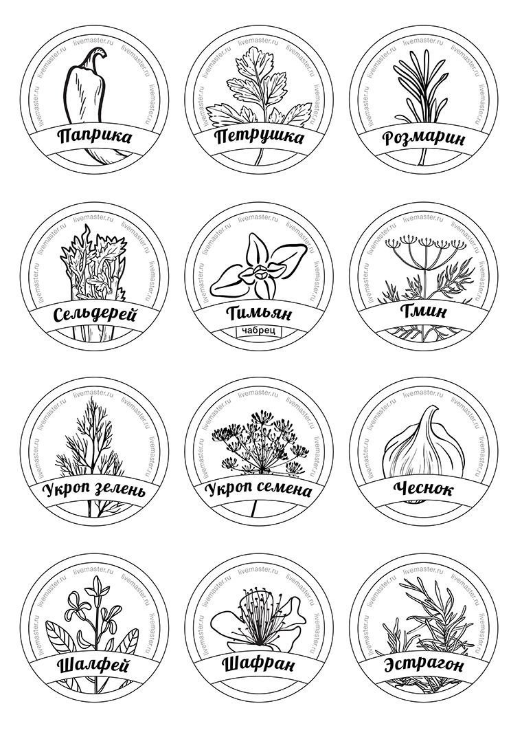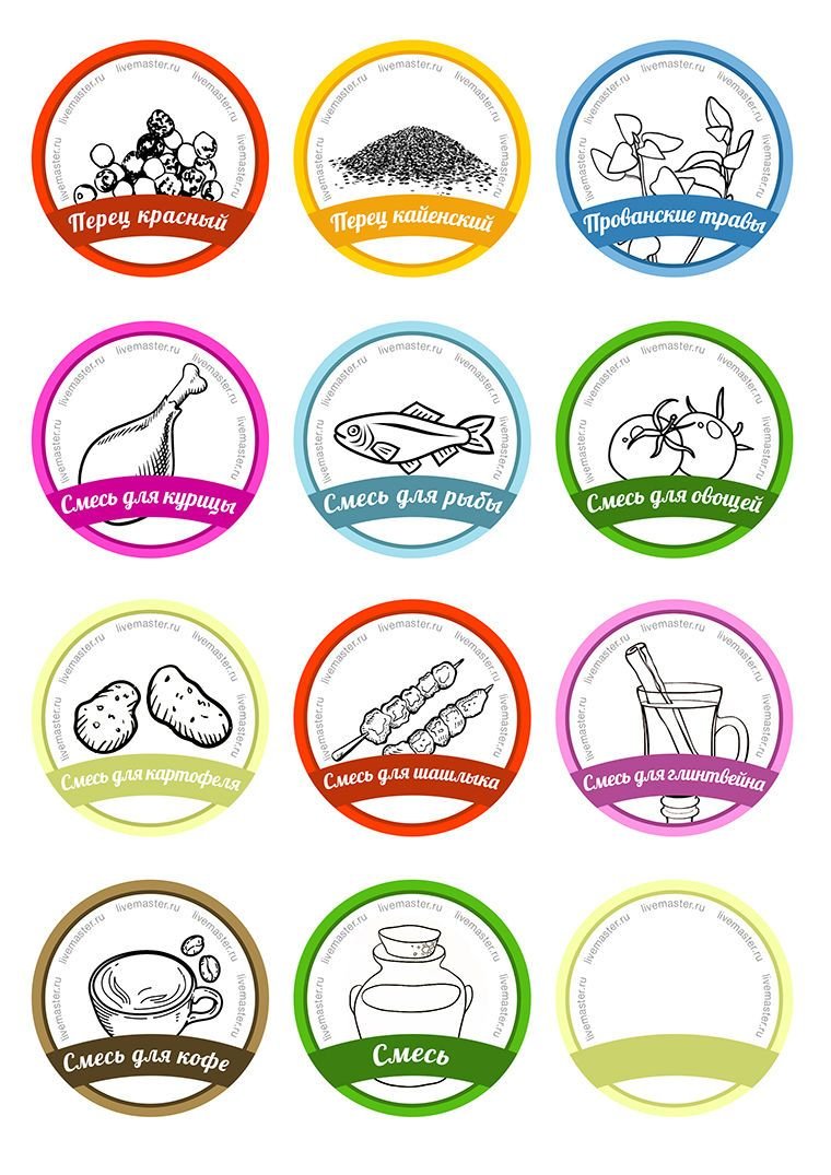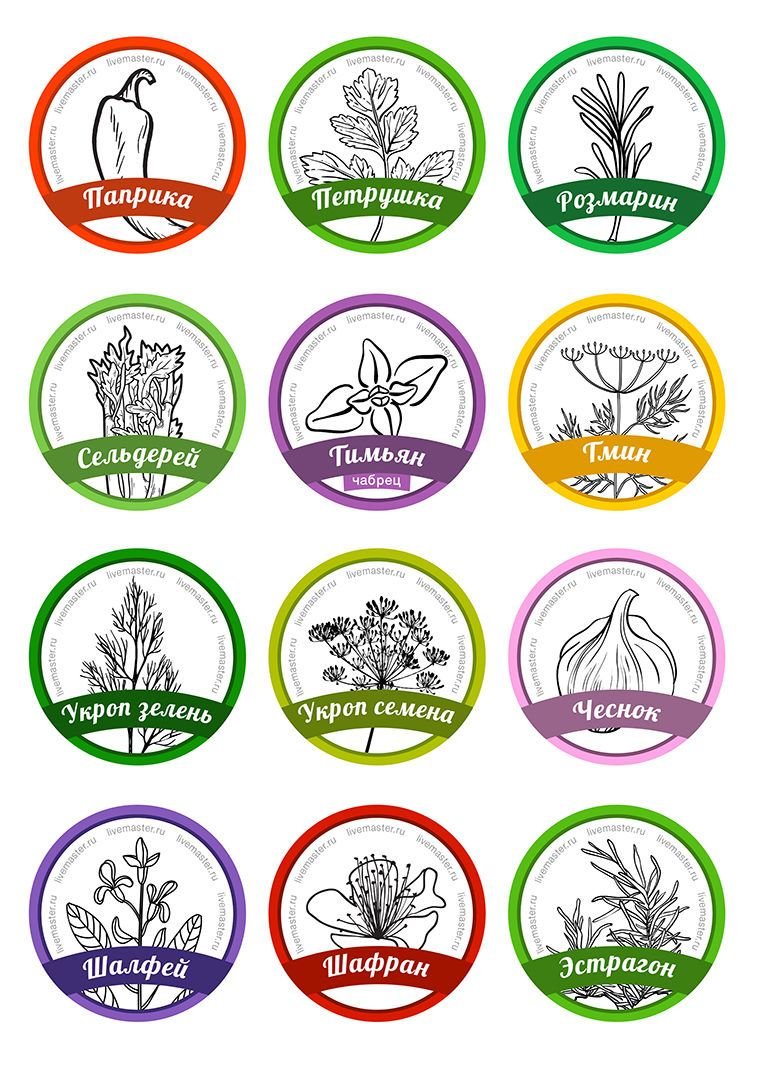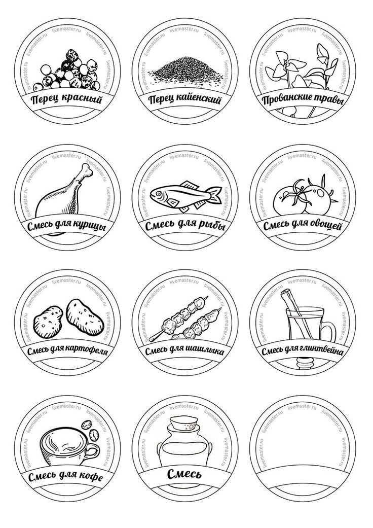 ![Этикетки для баночек со специями на русском круглые]()