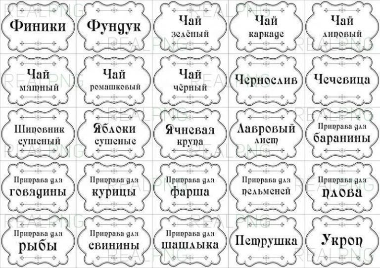 Надписи для баночек со специями