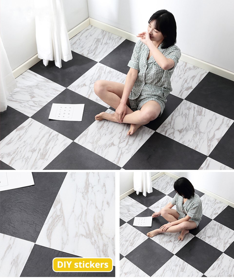 ![Самоклеющаяся плитка ПВХ для пола]()