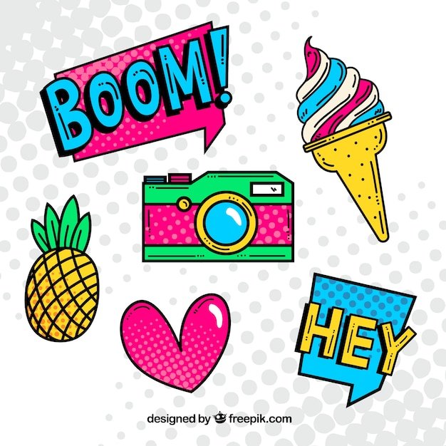 ![Значки в стиле поп арт]()