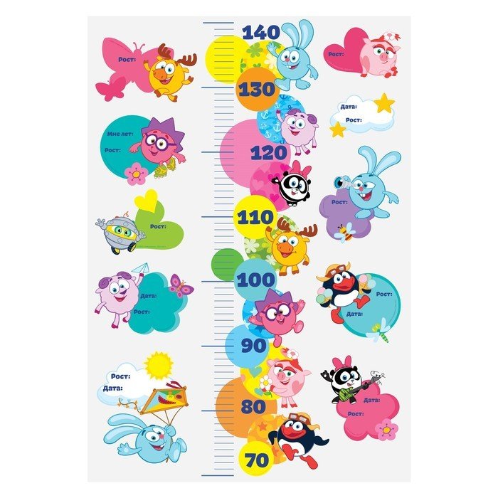 Наклейка - ростомер Смешарики "друзья" 50х70см 2765722