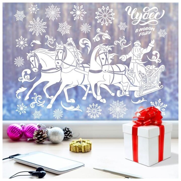 Наклейка для окон «тройка лошадей» , 50 х 70 см