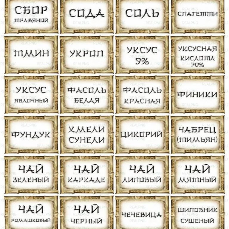 Надписи для специй и приправ