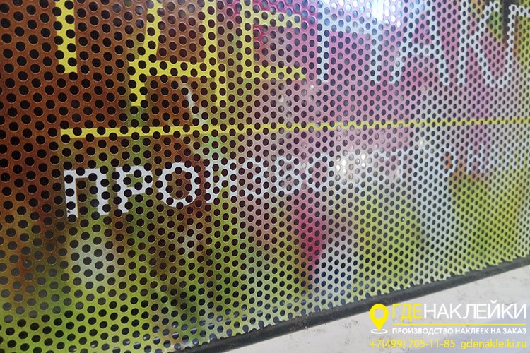 ![Перфорированная наклейка на стекло]()