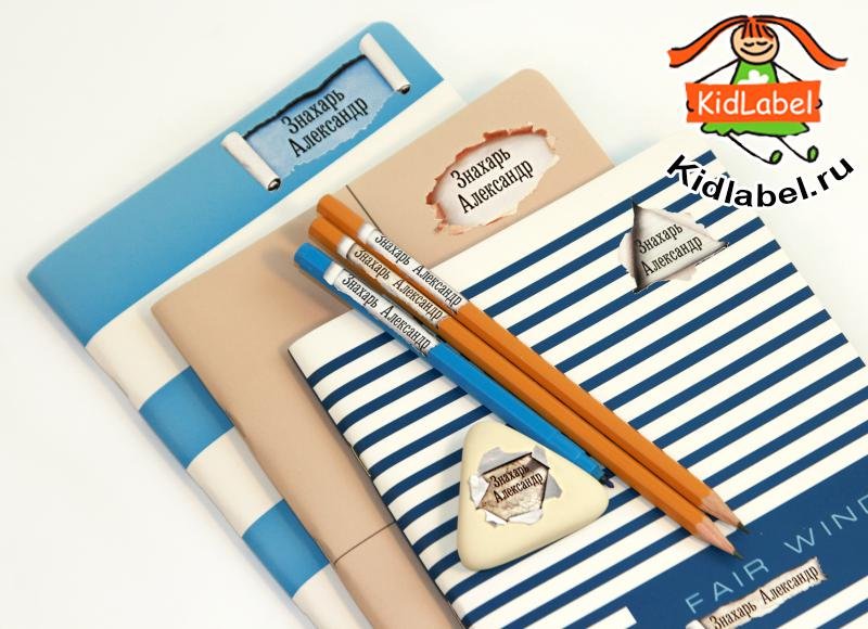 ![Именные наклейки на канцтовары]()
