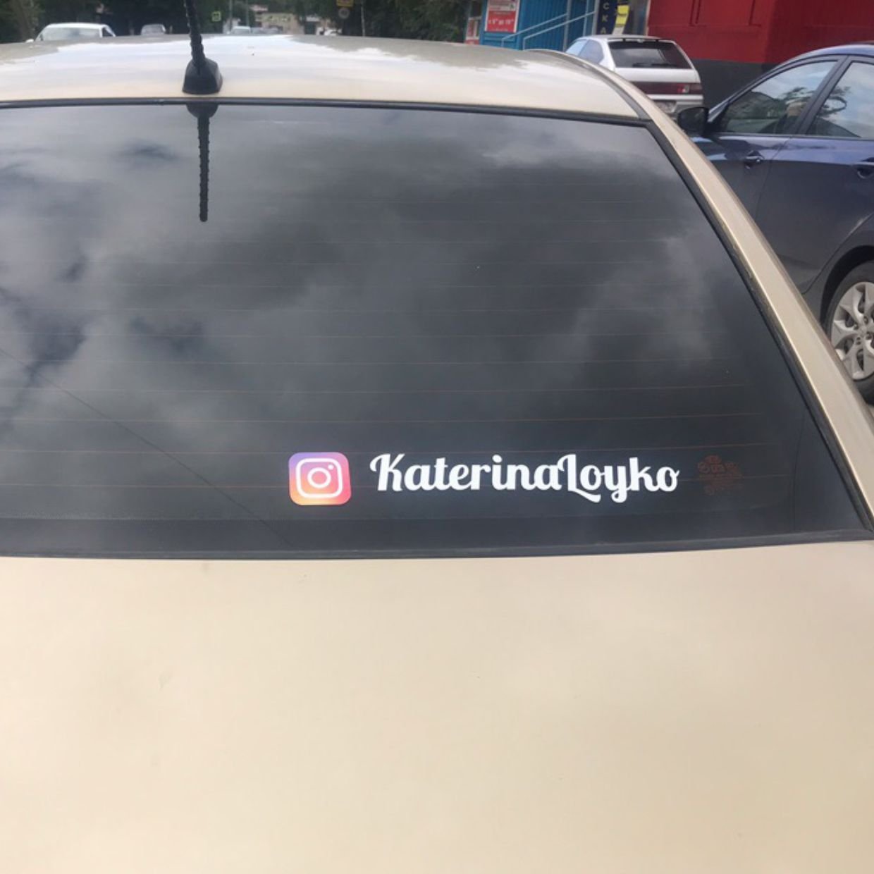![Наклейка инсты на стекле авто]()
