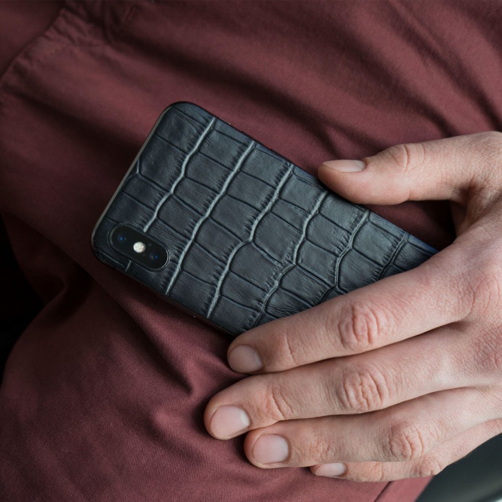 ![Чехол накладка Glueskin с натуральной кожей Croco для iphone 13 Pro Max]()