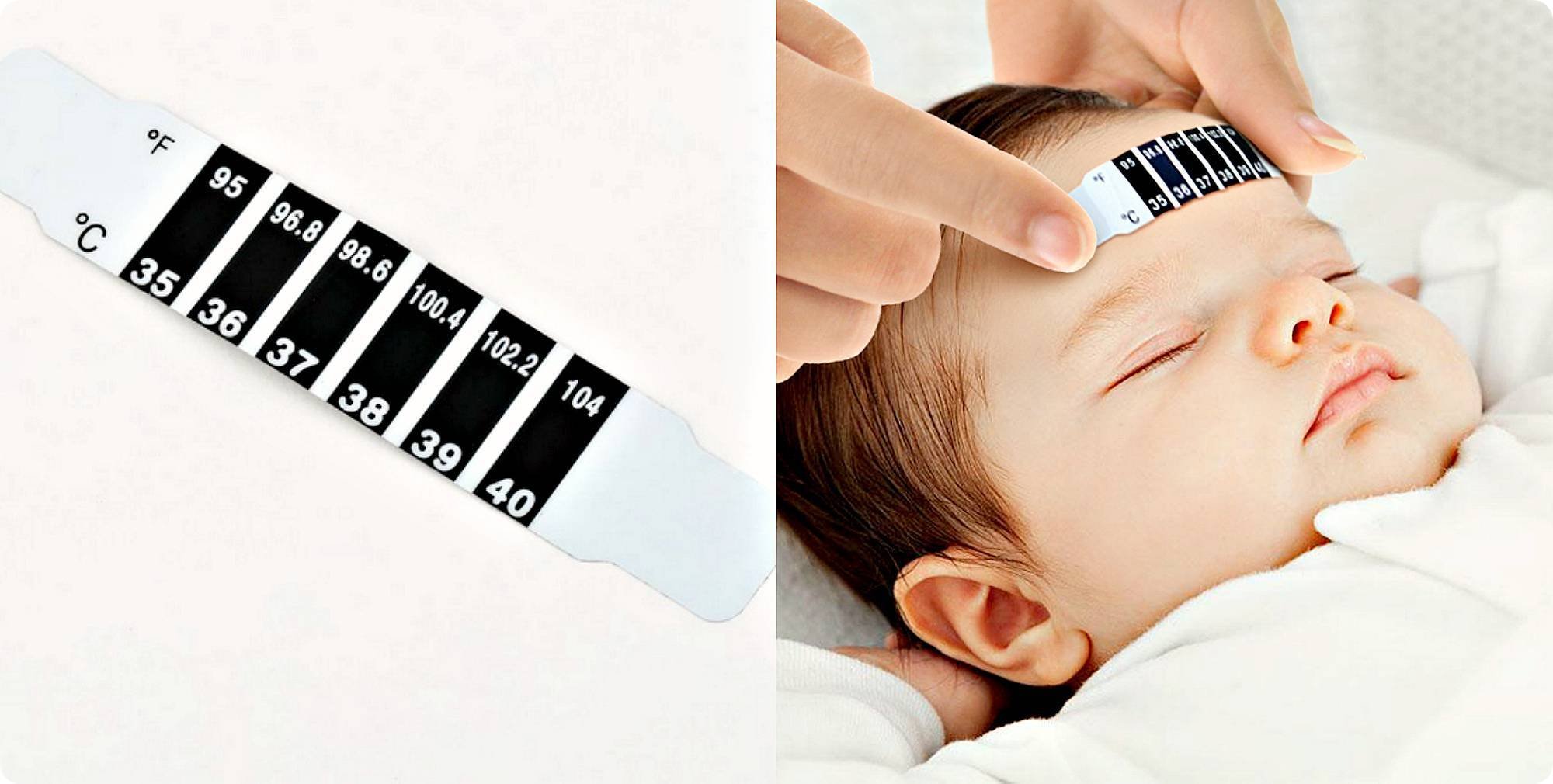 ![Детский термометр наклейка на лоб]()