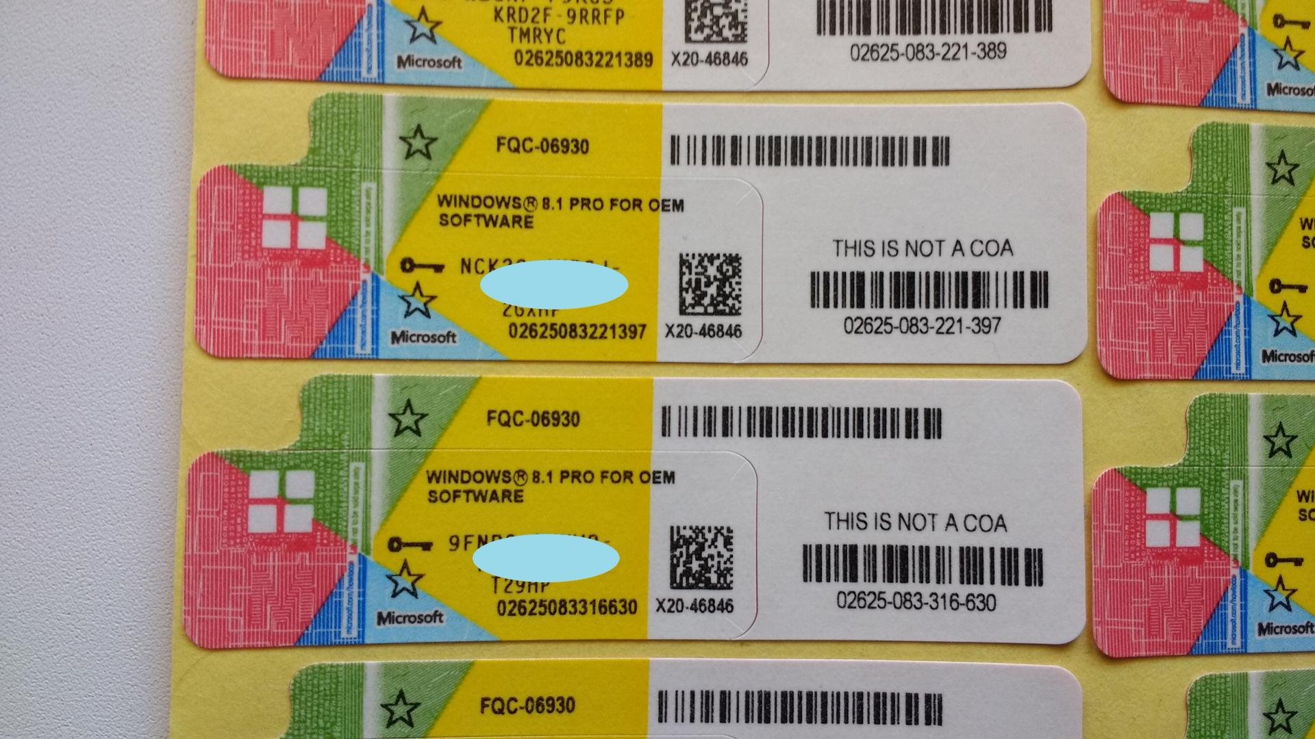 ![OEM ключ Windows 10 Pro наклейки]()