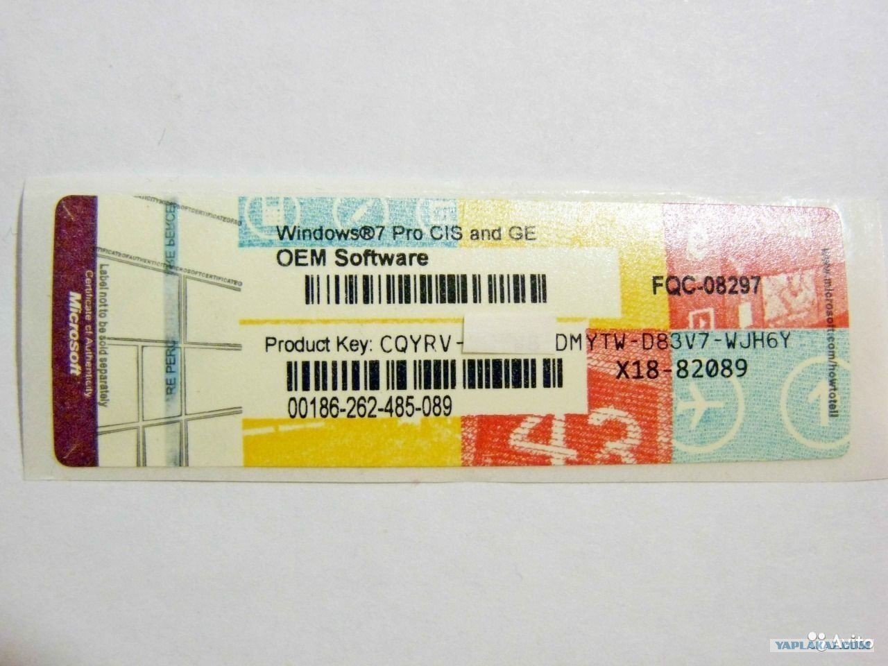 Наклейки Windows 7 Pro ключ продукта