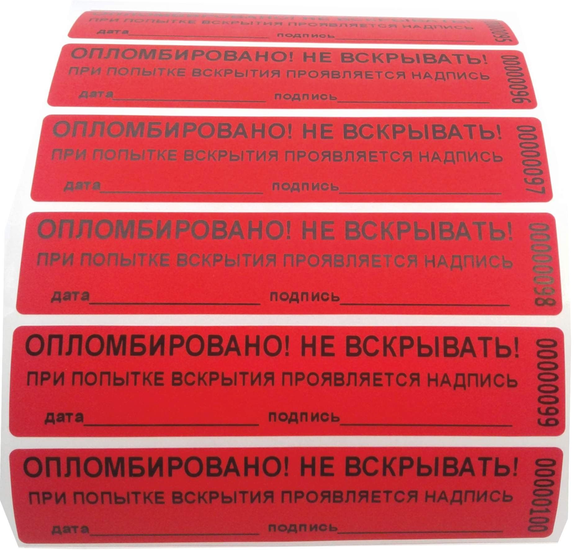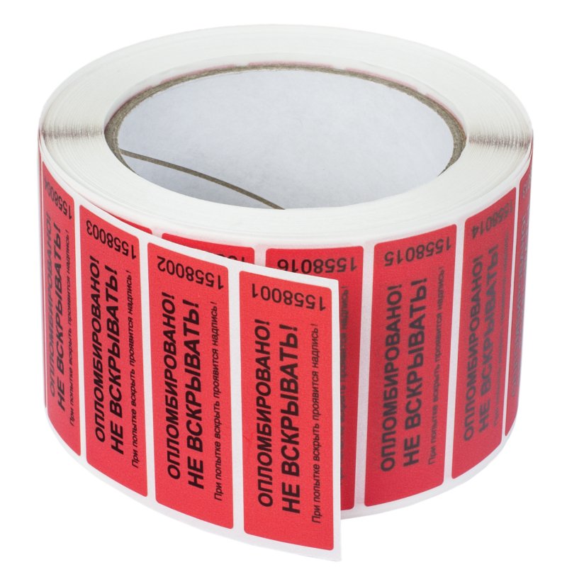 ![Пломба-наклейка номерная 20х100 мм, рулон 1000 шт. Красный]()