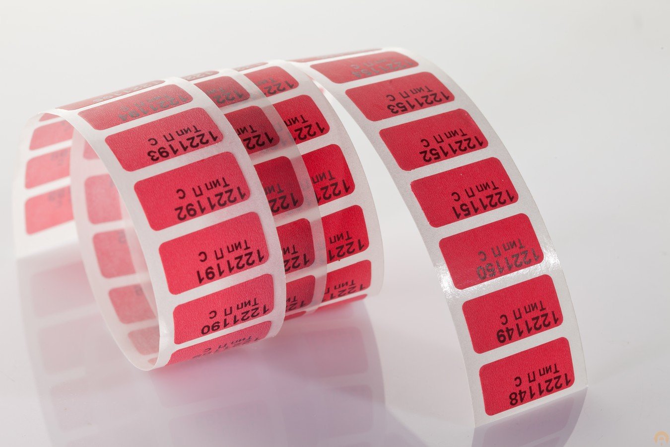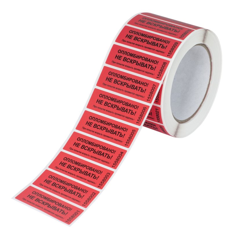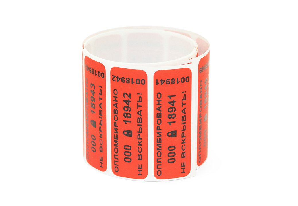 Пломба-наклейка номерная 66*22мм цвет красный 1000шт./рул
