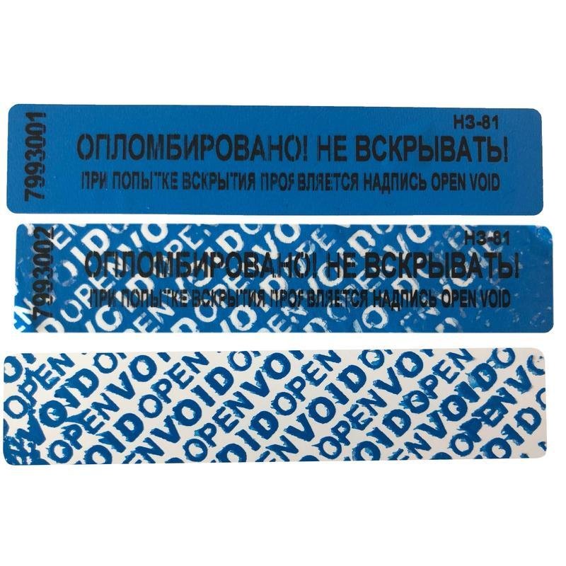 ![Пломба наклейка 100x20 мм синяя (1000 штук в упаковке)]()
