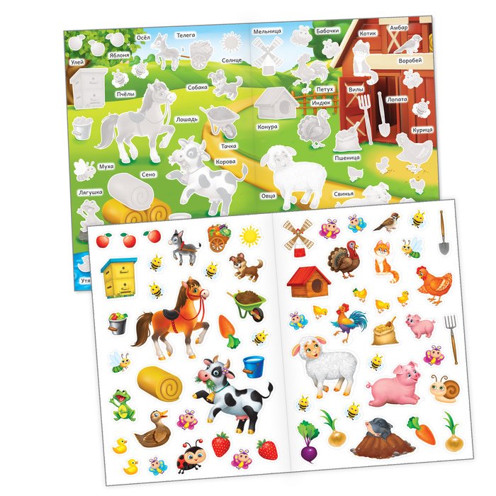 ![Книга с многоразовыми наклейками ферма 3950983]()