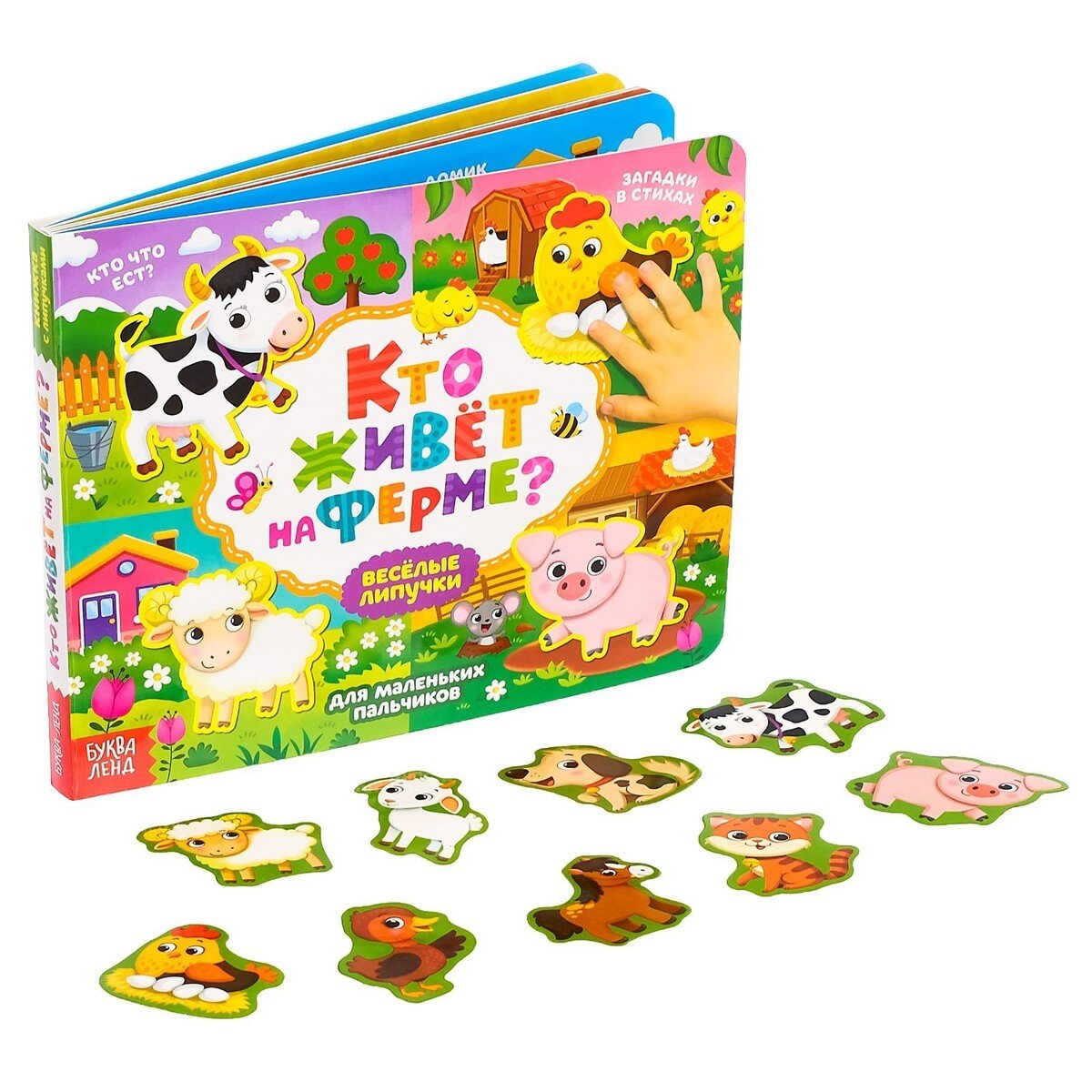 ![Книжка с липучками "кто живёт на ферме?", 12 стр.]()