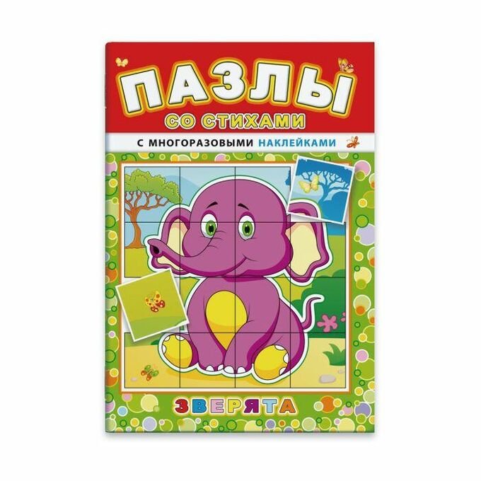 ![Книжка с наклейками "пазлы со стихами. Зверята"]()