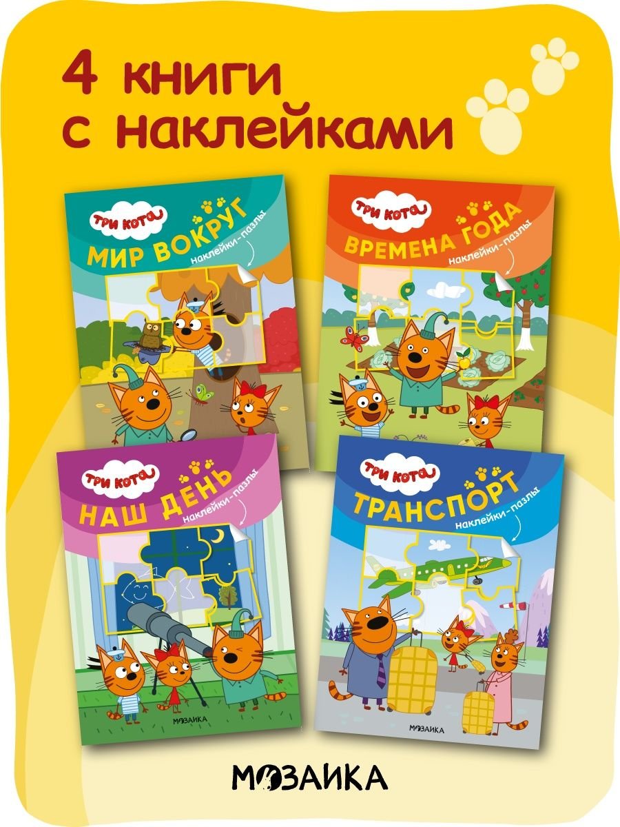 ![Три кота наклейки пазлы]()