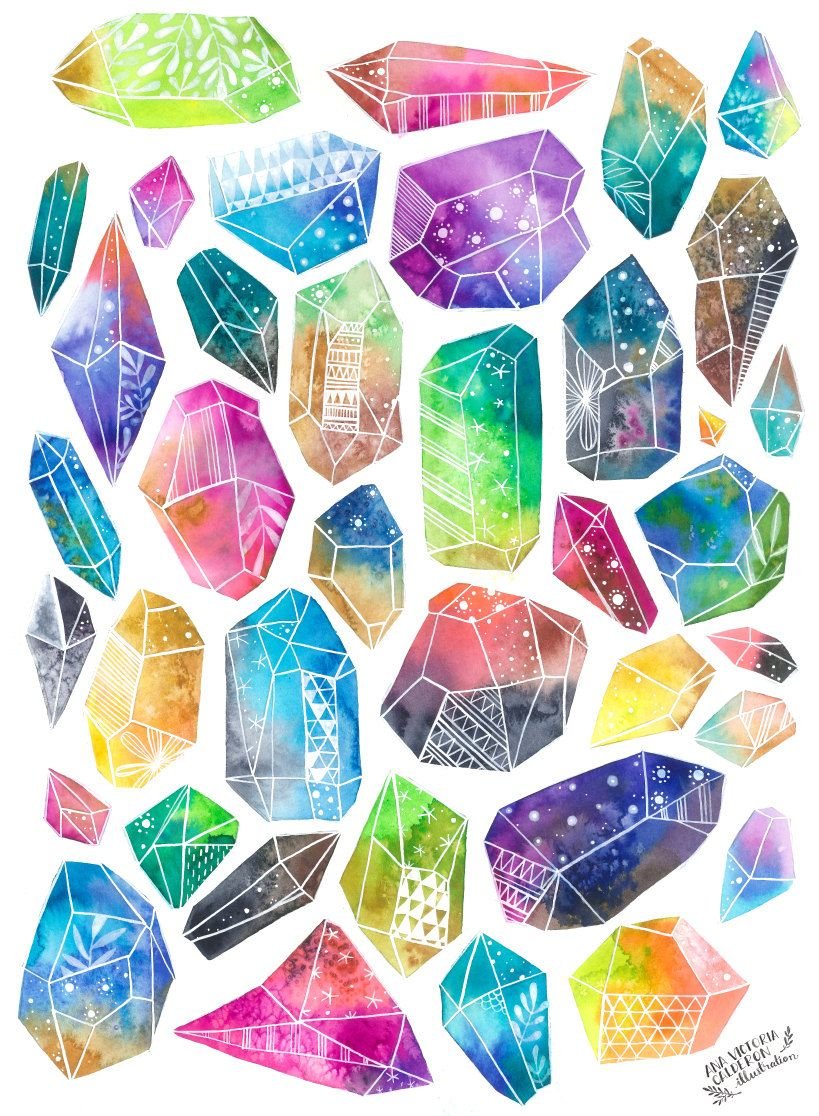Драгоценные камни акварелью