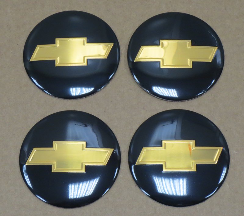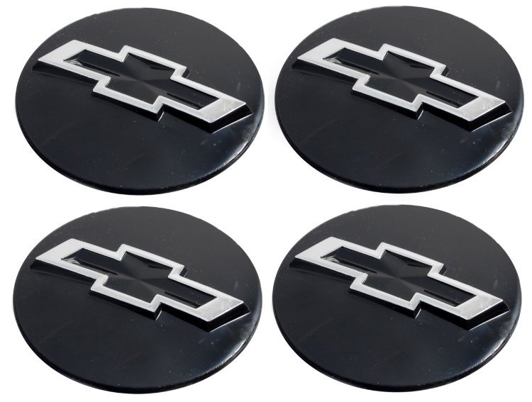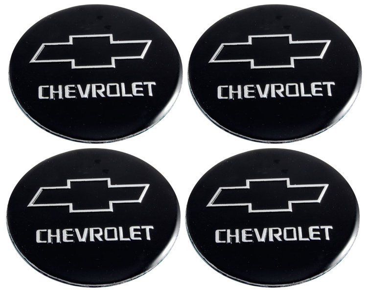 Наклейки на колпак ступицы с эмблемой Chevrolet (4шт) d=60мм выпуклые чёрные