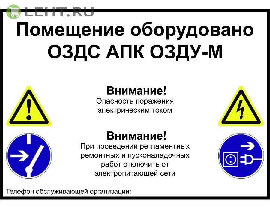 ![Предупреждающая наклейка помещение оборудовано ОЗДС АПК ОЗДУ-М]()