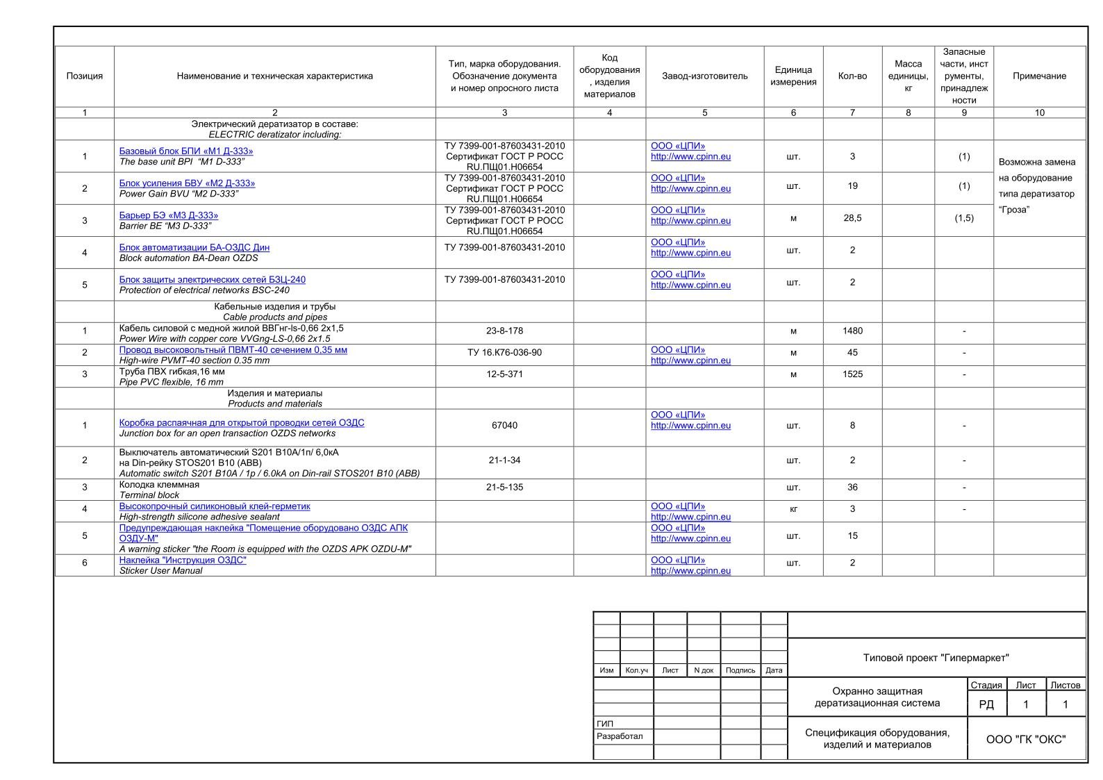 Спецификация оборудования, изделий и материалов тепловых сетей