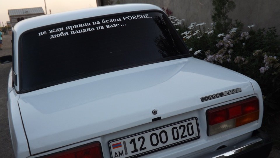 Надписи на лобовом ВАЗ 2107