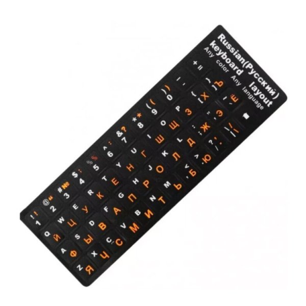 ![Наклейки на клавиатуру с русскими и английскими буквами]()