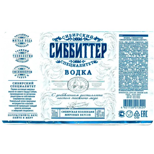Водка Сиббиттер Сибирский специалитет, 0.5 л
